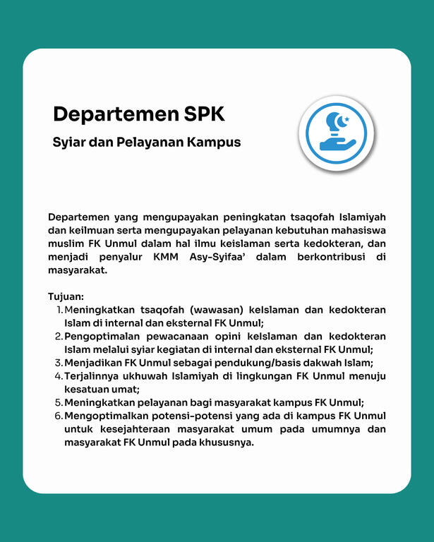 Keluarga Mahasiswa Muslim Asy-Syifaa’ merupakan lembaga dakwah di Fakultas Kedokteran Universitas Mulawarman yang bertugas dalam mengemban amanah dakwah